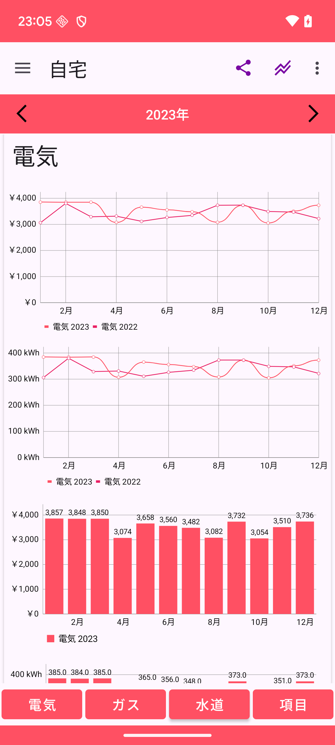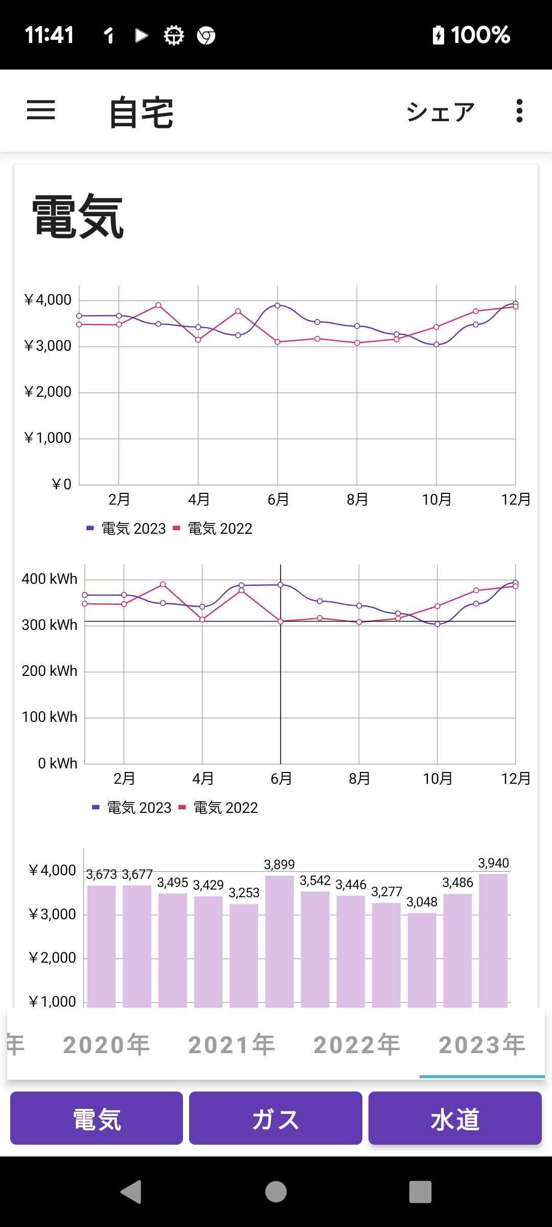 光熱費 電気 金額と使用料の比較