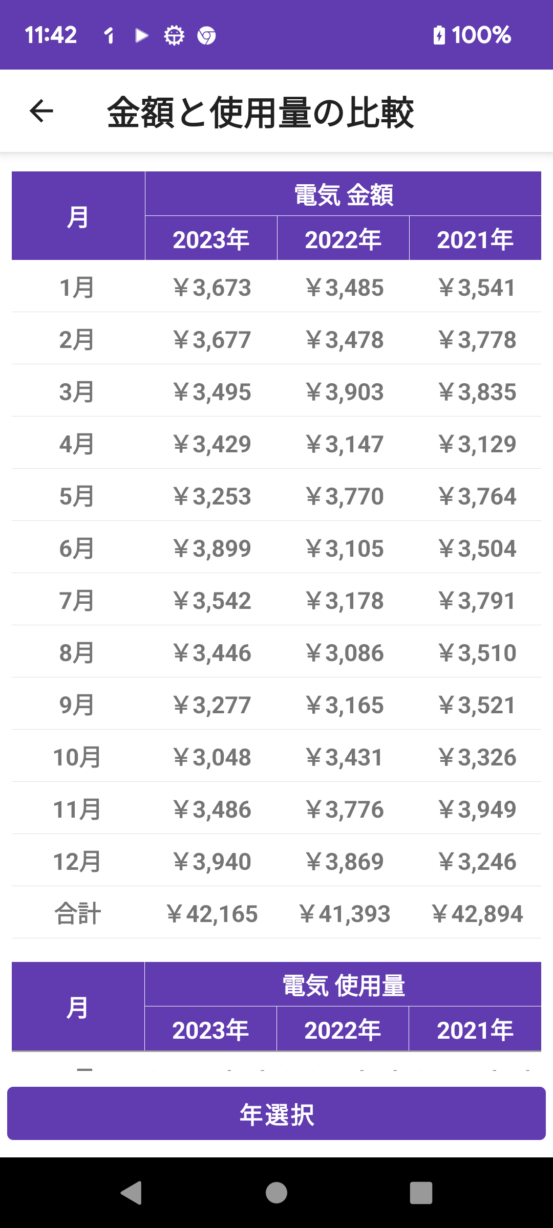光熱費 電気 年間の金額と使用料の一覧表