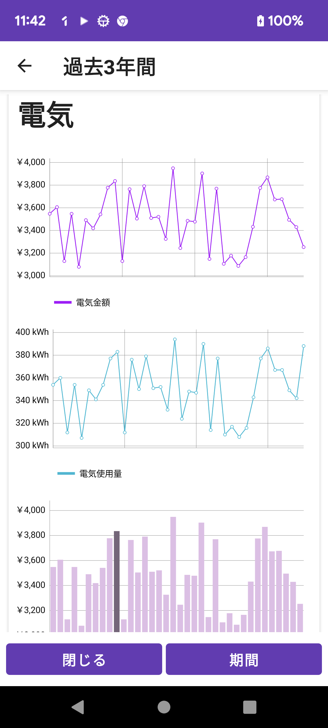光熱費 電気 過去3年間のグラフ