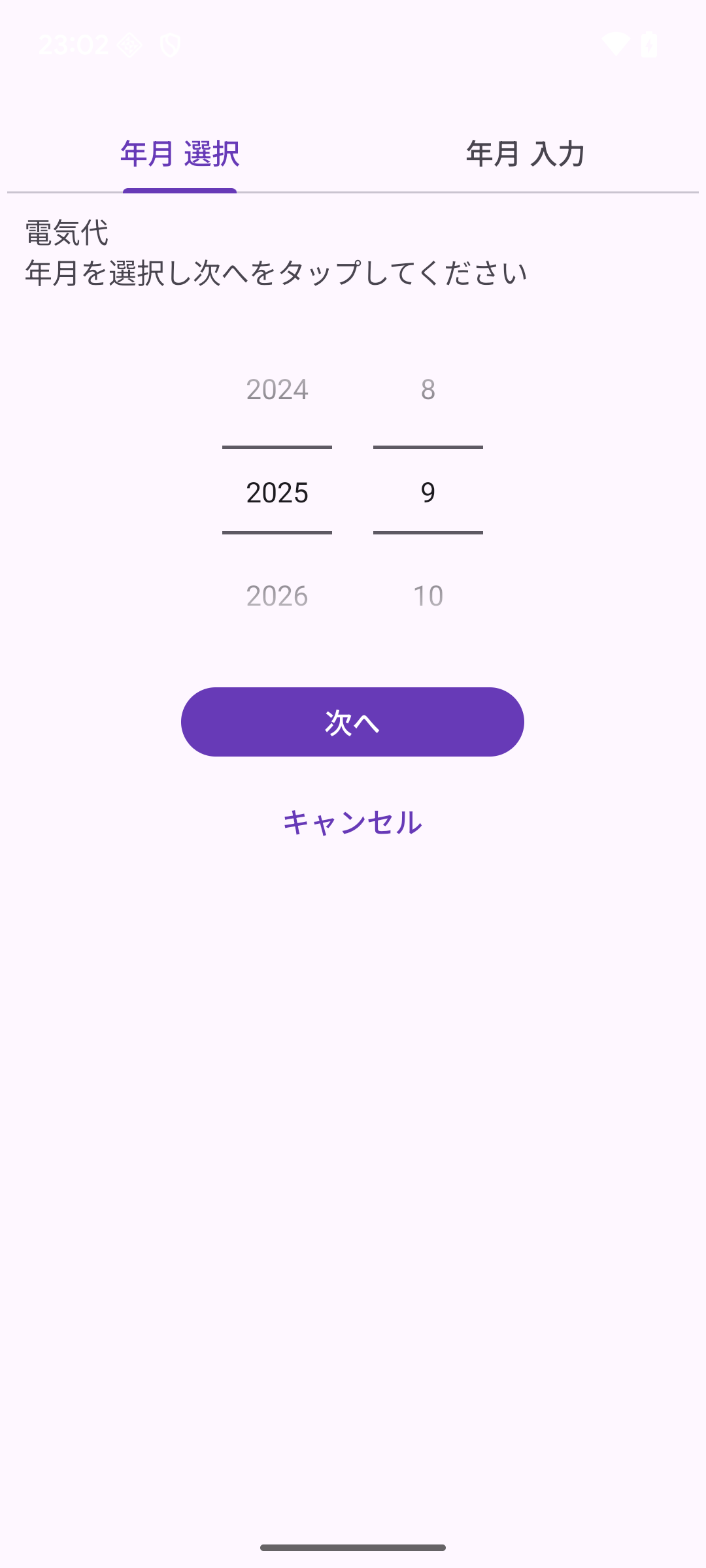 光熱費 電気 年月を選択する画面