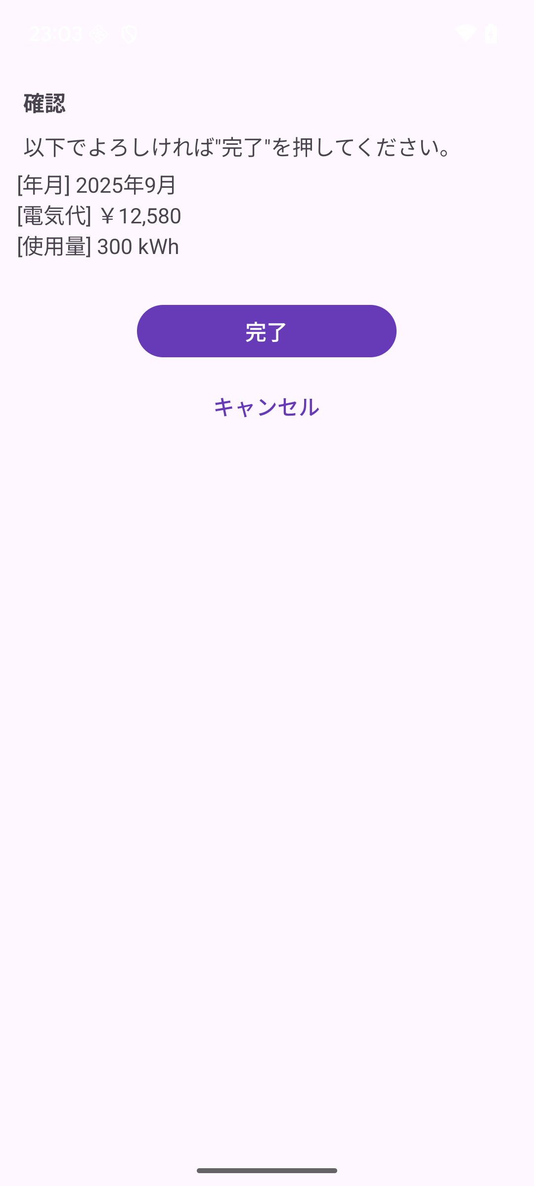光熱費 記録の保存 確認画面