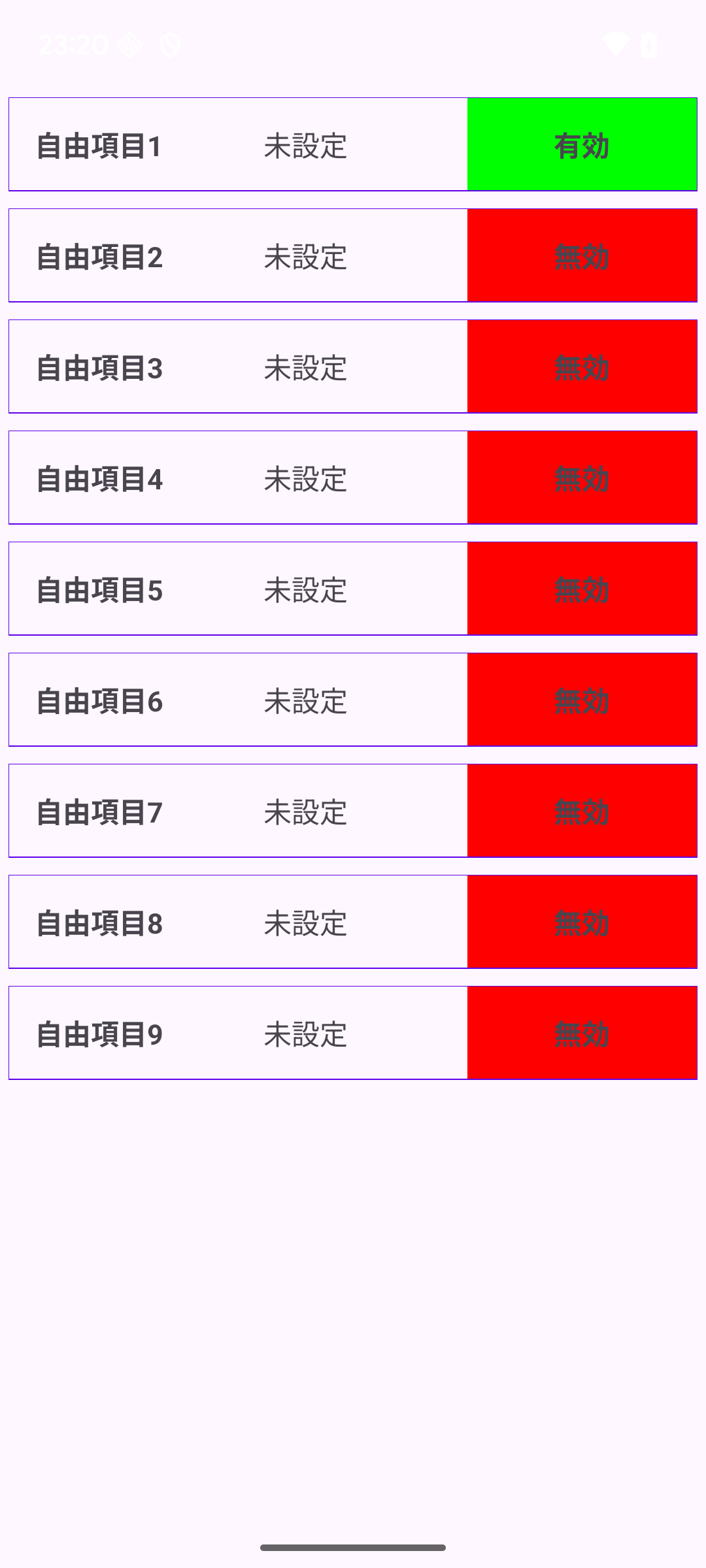 自由項目の設定画面