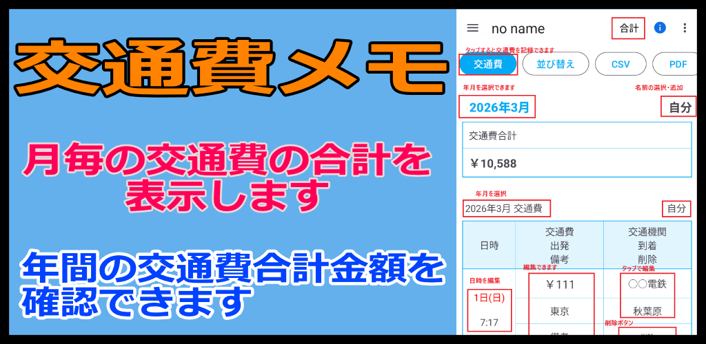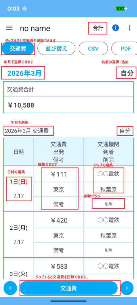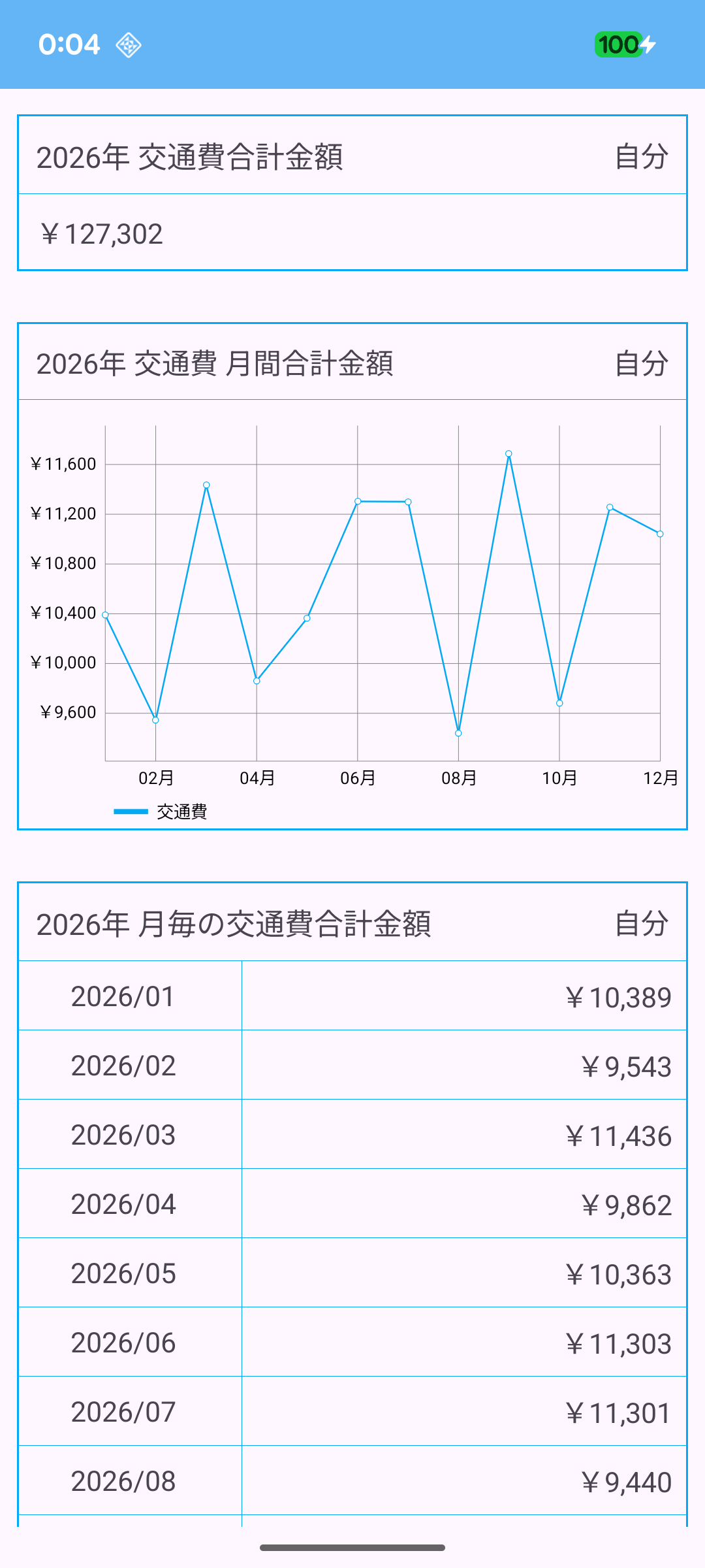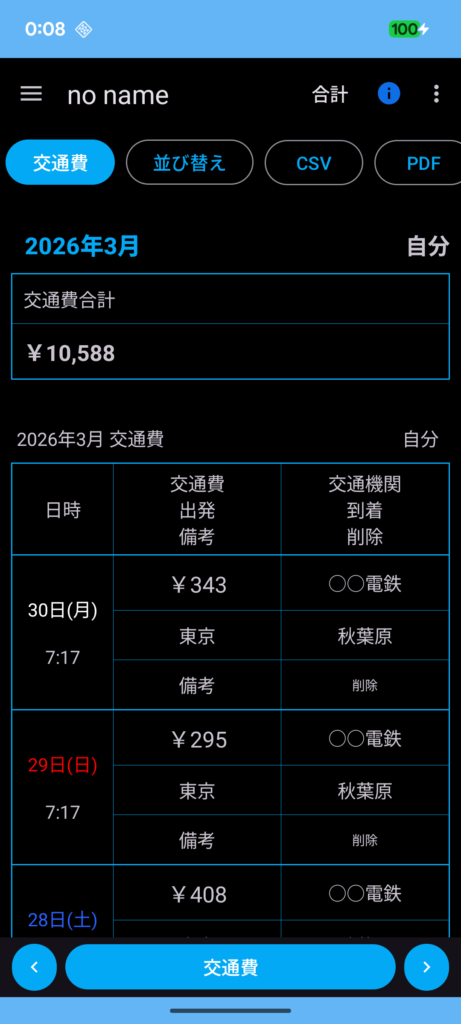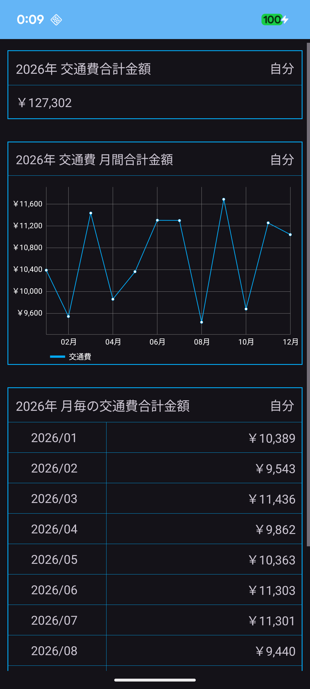交通費 メモ 交通費を記録できます。月毎の交通費の合計を表示します。年間の交通費合計金額を確認できます。 交通費 メモ アプリはGoogle playでインストールできます 交通費 メモ トップ画面 交通費 メモ 合計金額 グラフ 交通費 メモ 年月日を選択する画面 交通費 メモ 交通費、交通機関、出発地など入力画面 交通費 メモ ダークテーマ時の画面 交通費 メモ アプリはGoogle playでインストールできます