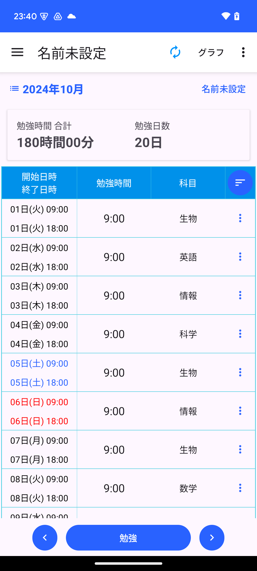 勉強時間をグラフで可視化