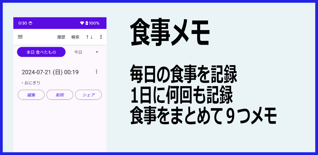 食事 メモ 食べた物 記録帳 アプリ 食事をメモして記録するためのアプリです。